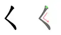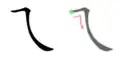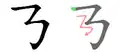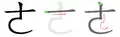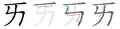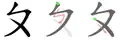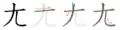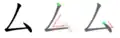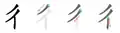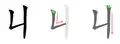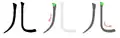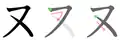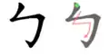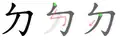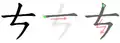 Kolejność stawiania kresek jest podobna do tej w piśmie chińskim, ale znak ㄖ pisany jest trzema kreskami.