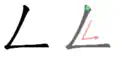 | ㄌ | l | Forma kaligraficzna znaku 力 lì |