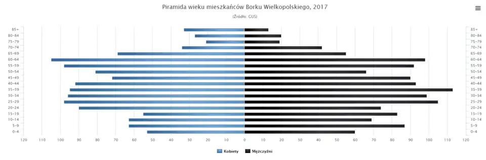 - Piramida wieku mieszkańców Borku Wielkopolskiego w 2014 roku[1].