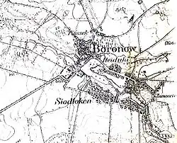 W alfabetycznym spisie miejscowości na terenie Śląska wydanym w 1830 roku we Wrocławiu przez Johanna Knie miejscowość zarówno w języku polskim jak niemieckim występuje pod tą samą nazwą Boronow[6]. Spis wymienia również okoliczne przysiółki oraz części wsi: Stare Huty, Kottara, Czielitz, Niewen, Sklarnia itp.[7].