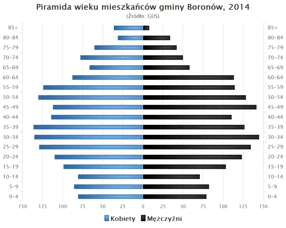 - Piramida wieku mieszkańców gminy Boronów w 2014 roku[1].
