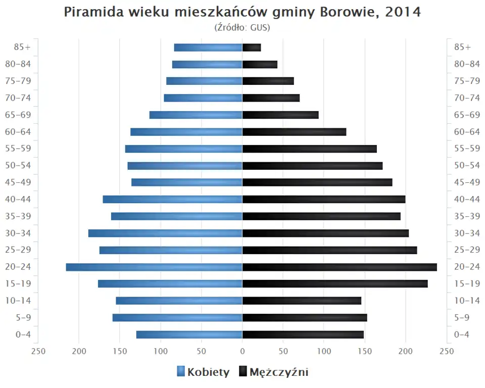 - Piramida wieku mieszkańców gminy Borowie w 2014 roku[6].