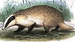 Borsuk[7] (Meles) – rodzaj ssaków z podrodziny Melinae w obrębie rodziny łasicowatych (Mustelidae). Współcześnie używane polskie określenie tego zwierzęcia, które wyparło wcześniejszą nazwę jaźwiec[8], pochodzi oryginalnie z języków tureckich (turcyzm), a do języka polskiego trafiła za pośrednictwem rusińskim (rutenizm)[9].