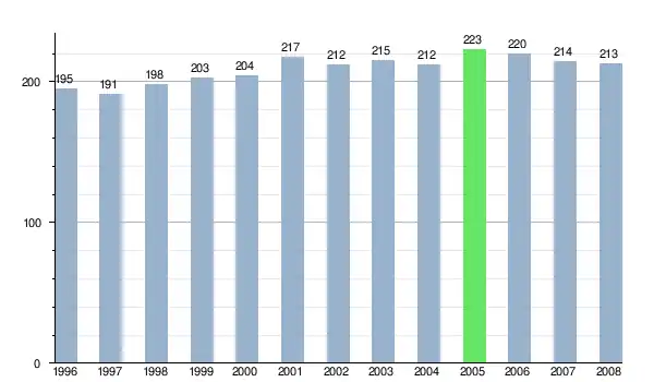Zmiany liczby ludności w miejscowości Bottovo od 1996 roku.