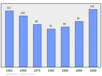 Według danych na rok 1990 gminę zamieszkiwało 80 osób, a gęstość zaludnienia wynosiła 15 osób/km² (wśród 2335 gmin Lotaryngii Bouillonville plasuje się na 965. miejscu pod względem liczby ludności, natomiast pod względem powierzchni na miejscu 981.).