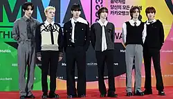 ![]() BoyNextDoor (2024) Od lewej: Taesan, Sungho, Jaehyun, Leehan, Riwoo, Woonhak | |