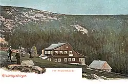 W skład kompleksu budynków schroniska - oprócz gmachu głównego - wchodzi jeszcze obiekt Laura (dawniej: Lauerova bouda), którego nazwa pochodzi od dawnego właściciela, Franza Lauera. Ponadto, do 1882 roku powyżej obecnych budynków istniała jeszcze Mléčná bouda (Molkenbaude), należąca do Franza Bradlera, zajmującego się produkcją mleka. Do dnia dzisiejszego pozostały tylko pozostałości kamiennych fundamentów.