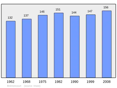 Według danych na rok 1990 gminę zamieszkiwały 144 osoby, a gęstość zaludnienia wynosiła 27 osób/km² (wśród 2335 gmin Lotaryngii Brémoncourt plasuje się na 901. miejscu pod względem liczby ludności, natomiast pod względem powierzchni na miejscu 981.).