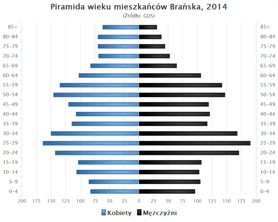 - Piramida wieku mieszkańców Brańska w 2014 roku[10].