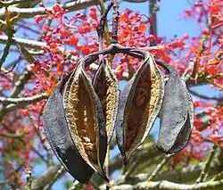 - ↑ Brachychiton acerifolius, [w:] The IUCN Red List of Threatened Species (ang.).