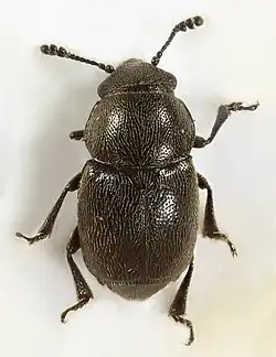 Chrząszcze o owalnym w zarysie, silnie wysklepionym ciele[1] długości od 1,5 do 2 mm[2]. Czułki buduje jedenaście członów, z których trzy ostatnie formują wyraźnie wyodrębnioną buławkę[1]. Rozmiary członów buławki są mniej więcej jednakowe[2]. Głaszczki szczękowe mają rozdęty człon wierzchołkowy. Szersze niż dłuższe przedplecze ma równomiernie zaokrąglone krawędzie boczne, tępe kąty tylne[1] i prawie prostą do lekko przed kątami tylnymi zafalowanej krawędź tylną[1][2]. Punkty na powierzchni dysku przedplecza są rozproszone i mają rozmiary większe niż fasetki oczu. Oprócz nich na przedpleczu wyrastają rzadko rozmieszczone, krótkie szczecinki. Pokrywy są szersze niż przedplecze[1]. Przedpiersie wypuszcza zaokrąglony na szczycie wyrostek międzybiodrowy[2]. Odnóża mają pięcioczłonowe stopy zwieńczone pazurkami o silnie wykształconych ząbkach nasadowych[2][1]. Samiec ma odsłonięty ósmy tergit. Styliki na pokładełku samicy nie występują[1].
