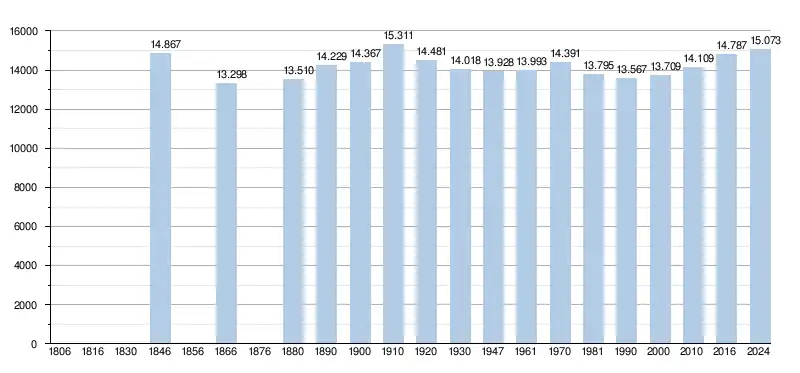 - Źródła: NIS, od 1806 do 1981= według spisu; od 1990 liczba ludności w dniu 1 stycznia