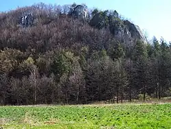 - Pytajnik wznoszący się w północnej części wylotu wąwozu, wysoko na szczycie zbocza[3].