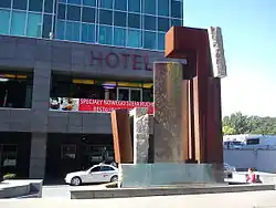 Fontanna stworzona z elementów granitowych, stalowych i blachy polerowanej, została zaprojektowana przez Andrzeja Bednarczyka i odsłonięta w październiku 2007. Ma za zadanie łączyć dwa skrajnie różne pod względem architektonicznym budynki – Andersię (modernizm) i Stary Browar (postmodernizm).