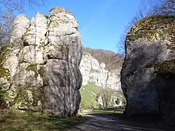 niebieski Szlak Warowni Jurajskich, odcinek od Doliny Prądnika, przez wąwóz Ciasne Skałki do Doliny Będkowskiej