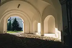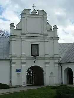 Brama łączy zabudowania gospodarcze będące dawniej częścią klasztoru Bazylianów (parterowe budynki pochodzące z XVII-XVIII wieku, pokryte blachą, skrzydło południowe zajmowała dawniej wozownia, w części wschodniej znajduje się od 1997 r. Dom Pielgrzyma - parterowy budynek pokryty czterospadowym blaszanym dachem).