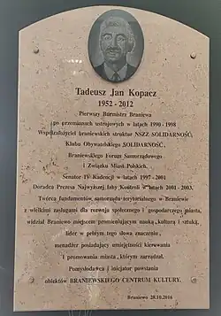 Braniewskie Centrum Kultury zostało utworzone Uchwałą Rady Miejskiej w Braniewie 1 sierpnia 2006 roku[6]. 25 sierpnia 2016 roku otrzymało imię jego twórcy – Tadeusza Kopacza[7].