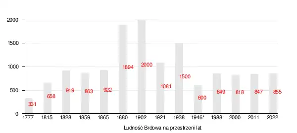 - 1880 r. – Liczba ludności Brdowa wyniosła rekordową liczbę 1 894 mieszkańców.