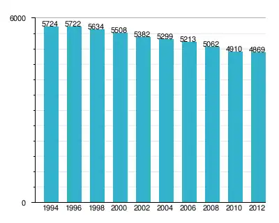 Miejscowość w latach 1994-2012 liczyła mieszkańców (dane oficjalne (Thüringer Landesamt)):