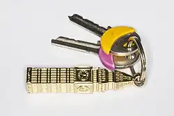 Brelok – często używana ozdoba doczepiana spinaczem lub łańcuszkiem do kluczy spiętych kółkiem lub karabińczykiem. Najczęściej wykonana z metalu, tworzywa sztucznego lub skóry.
