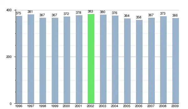 Zmiany liczby ludności w miejscowości Bretejovce od 1996 roku.