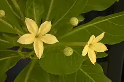 - Okazałe i wonne, zebrane w 3–8 kwiatowe grona[5]. Korona biała (u B. rockii) lub żółta (u B. insignis)[7]. Końce płatków rozpostarte, w dole zrośnięte w prostą, cienką rurkę nierozdzieloną lub rzadziej rozciętą maksymalnie do 1/3 długości. Rurka ze zrośniętych nitek pręcików przylega do rurki korony do połowy jej długości i schowana jest w niej w całości. W szczytowej części nitki są pokryte sztywnymi włoskami[5].