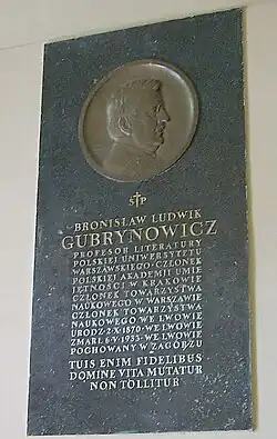 - W 1934 roku baron Adam Gubrynowicz ufundował tablicę pamiątkową ku czci swojego ojca, która została umieszczona w kościele pw. Marii Magdaleny we Lwowie dłuta Jana Nalborczyka.