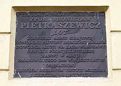 - ↑ Stanisław Ciepłowski: Wpisane w kamień i spiż. Inskrypcje pamiątkowe w Warszawie XVII–XX w.. Warszawa: Argraf, 2004, s. 271. ISBN 83-912463-4-5.