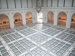 Wewnątrz pawilonu wyeksponowano odrestaurowane, dawne filary, między którymi mieściło się pięć drzwi wejściowych. Pod podłogą zbudowano pomieszczenie o powierzchni prawie 1 500 m², w którym mieszczą się urządzenia kontroli klimatyzacji w budynku.