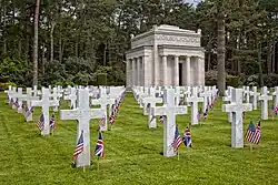 - ↑ Drugim jest Cambridge American Cemetery, gdzie pochowani są żołnierze polegli w II wojnie światowej[6].