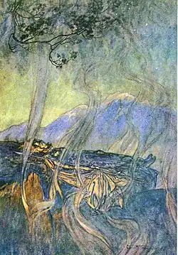 Walkirie były pannami-wojowniczkami, które – uzbrojone w hełmy, tarcze i włócznie – służyły Odynowi na polu bitwy. Jeździły wtedy po niebie na swych pięknych rumakach i walczyły razem z nim.