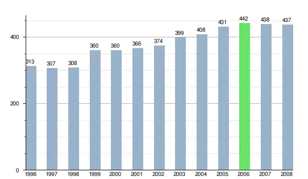 Zmiany liczby ludności w miejscowości Brusnica od 1996 roku[9].