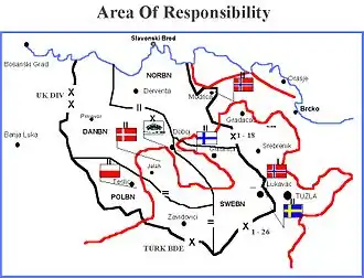 - ↑ Artur Bliski: War and peacekeeping mission of the Nordic-Polish Brigade in Bosnia-Herzegovina. Monterey: Calhoun: The NPS Institutional Archive, 2001, s. 28-30.