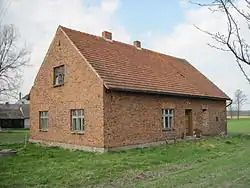 - zagrody z 2. ćwierci XIX w. przy ul. Powstańców Śląskich 34 i 36; są to 2 domy parterowe, murowane, otynkowane, usytuowane szczytowo, 2-osiowe z dachami 2-spadowymi, krytymi dachówką; do początku lat 90. między budynkami znajdowały się odcinki muru flankującego wjazd na dziedziniec gospodarczy, z furtami zamkniętymi półkoliście[41]