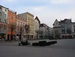 ![]() Zamek Piastów Śląskich, kościół Podwyższenia Krzyża Świętego, budynek poczty, Rynek, Brama Odrzańska, ratusz | |||||