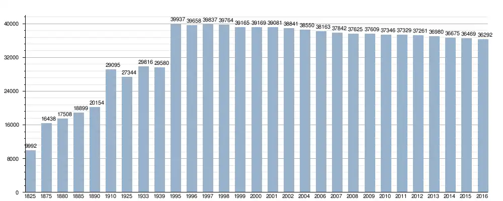 Według danych GUS z 1 stycznia 2024 roku miasto liczy 33 403 mieszkańców[1].