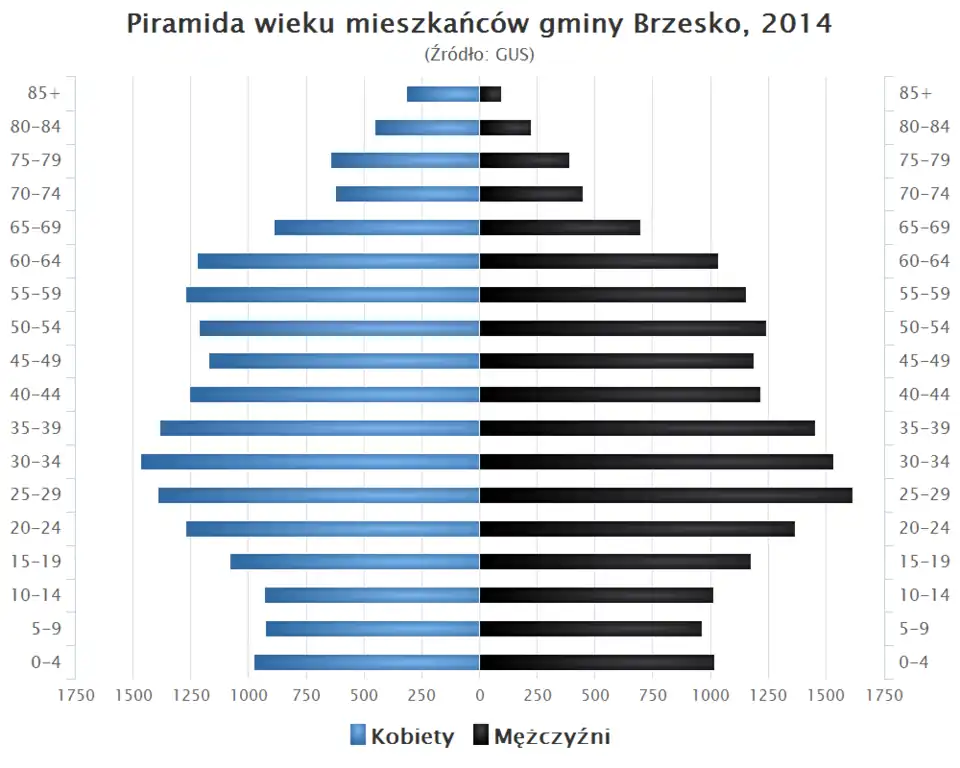 - Piramida wieku mieszkańców gminy Brzesko w 2014 roku[5].