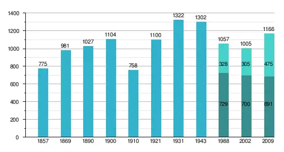 | Rok | 1900 | 1921 | 1931 | 2002 |