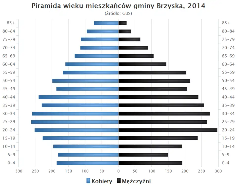 - Piramida wieku mieszkańców gminy Brzyska w 2014 roku[5].