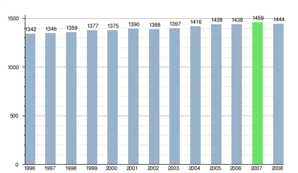 Według danych z dnia 31 grudnia 2012 roku, wieś zamieszkiwały 1463 osoby, w tym 762 kobiety i 701 mężczyzn[6].
