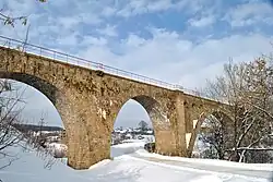 Znajduje tu się przystanek kolejowy Bucniów, położony na linii Tarnopol – Stryj.