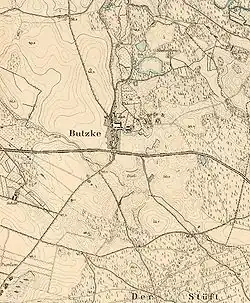 Miejscowość o metryce średniowiecznej (pierwsza wzmianka 1346[3]) i gniazdo rycerskiego rodu, który wziął od niego swoje imię. Butzke. Majątek nadano rodzinie Butzke jako lenno w 1555 r. przez księcia Barnima IX. W XVII wieku podzielony na dwie części, z których jedna przeszła w ręce rodziny Lorenz. W drugiej połowie XVIII wieku majątek ponownie scalony przez rodzinę von Butzke i przekształcono w alodium. W 1804 r. majątek kupiła rodzina von Kleist, w 1812 r. odkupił go dzierżawca von Kleistów – Mielke, a następnie w 1828 r. Langerbeck, który wybudował dwór i zabudowania folwarczne. Od 1856 r. do końca II wojny światowej majątek był własnością rodziny Lobeck[4].