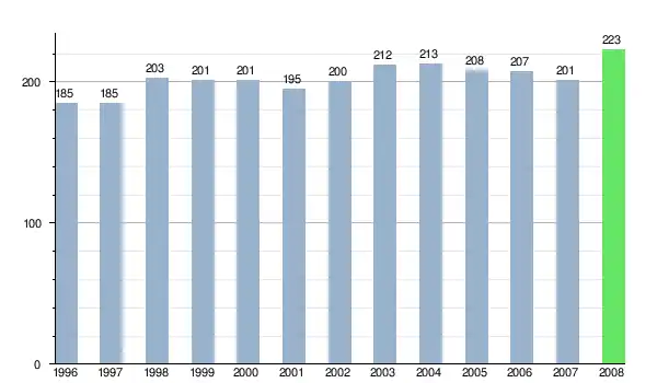 Według danych z dnia 31 grudnia 2012, wieś zamieszkiwały 223 osoby, w tym 115 kobiet i 108 mężczyzn[6].