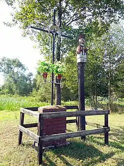 We wsi znajduje się figura św. Jana Nepomucena. Reprezentuje typ Nepomuków charakterystyczny dla zachodniej Kurpiowszczyzny: przedstawienia ludowe ciosane z drewna w postaci statycznej figury ustawionej na wysokim słupie (Olszewka, Połoń, Małowidz, dawniej także Żelazna)[9][10].