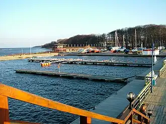 - budowla nawodna lub podwodna usytuowana: na obszarach morskich, w rejonie bezpośredniego kontaktu z akwenami morskimi, tj. w pasie technicznym wybrzeża morskiego lub w portach i przystaniach morskich, używa się także pojęcia: budowla morska; dla tej grupy budowli hydrotechnicznych wydano odrębne przepisy techniczno-budowlane, również z delegacji ustawowej zawartej w Prawie budowlanym[2][3][4].