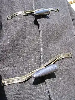 - zapinana na drewniane lub plastikowe kołki i pętelki ze skóry lub sznurka (ułatwiały marynarzom zapinanie i odpinanie się bez zdejmowania rękawic)