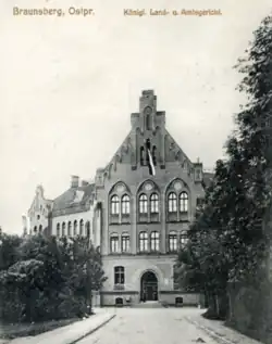 Na skutek tej reorganizacji systemu sądownictwa w Prusach Braniewo stało się siedzibą zarówno sądu krajowego (Landgericht), jak i rejonowego (Amtsgericht). Sąd Krajowy z kolei podlegał, wraz z izbami w Olsztynie, Bartoszycach, Czerniachowsku, Królewcu, Ełku, Kłajpedzie i Sowiecku, pod Wyższy Sąd Krajowy (Oberlandesgericht) w Królewcu[4]. Sądy krajowe rozpoczęły działalność 1 października 1879. Stanowiły one II instancję w sprawach cywilnych i karnych, rozpatrywanych przez sądy rejonowe. Ponadto rozstrzygały ważne sprawy cywilne i karne, niebędące w zakresie kompetencji sądów I instancji. Posiadały one wydziały cywilne i karne (Zivilkammer, Strafkammer). Rejon Sądu Krajowego w Braniewie obejmował obszar zamieszkiwany przez niemal 200 tys. osób (w 1888 – 197 543 osoby[5]). Na czele sądu stał prezydent, na czele wydziałów cywilnego i karnego stało 2 dyrektorów, ponadto w sądzie pracowało 7 sędziów[5][3]. Pod Sąd Krajowy w Braniewie podlegało dziesięć sądów rejonowych – w Braniewie (Amtsgericht Braunsberg), Mamonowie (Amtsgericht Heiligenbeil), Miłakowie (Amtsgericht Liebstadt), Pieniężnie (Amtsgericht Mehlsack), Morągu (Amtsgericht Mohrungen), Młynarach (Amtsgericht Mühlhausen), Pasłęku (Amtsgericht Preußisch Holland), Zalewie (Amtsgericht Saalfeld), Ornecie (Amtsgericht Wormditt) i Korniewie (Amtsgericht Zinten). Natomiast apelacje, odwołania i rewizje od wyroków Sądu Krajowego w Braniewie były wnoszone do Wyższego Sądu Krajowego w Królewcu (Oberlandesgericht Königsberg)[3].