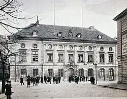 Wejście główne prowadziło do holu i na klatkę schodową. Według założeń projektowych parter miał pełnić funkcje usługowe: miały tu być biura, garderoby, restauracja oraz salon bilardowy, trzy pokoje w tym pokój do gry w szachy i pokój do gry w karty[1]. Na piętrze umieszczono reprezentacyjne sale, w tym salę balową z emporą muzyczną do której z westybulu prowadziły monumentalne, trójbiegowe schody. Pomieszczenia piwniczne pełniły funkcje gospodarcze[1][4].
