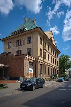 Gmach powstał w 1911 roku[1][2] jako placówka Reichsbanku[2]. Został on zaprojektowany przez niemieckiego architekta Juliusa Habichta[1][3], który był autorem wielu tego typu placówek na terenie Niemiec. Projekt został opracowany w grudniu 1910 roku w Berlinie[3].
