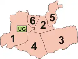 1. Budzów, 2. Baczyn, 3. Bieńkówka, 4. Jachówka, 5. Palcza, 6. Zachełmna